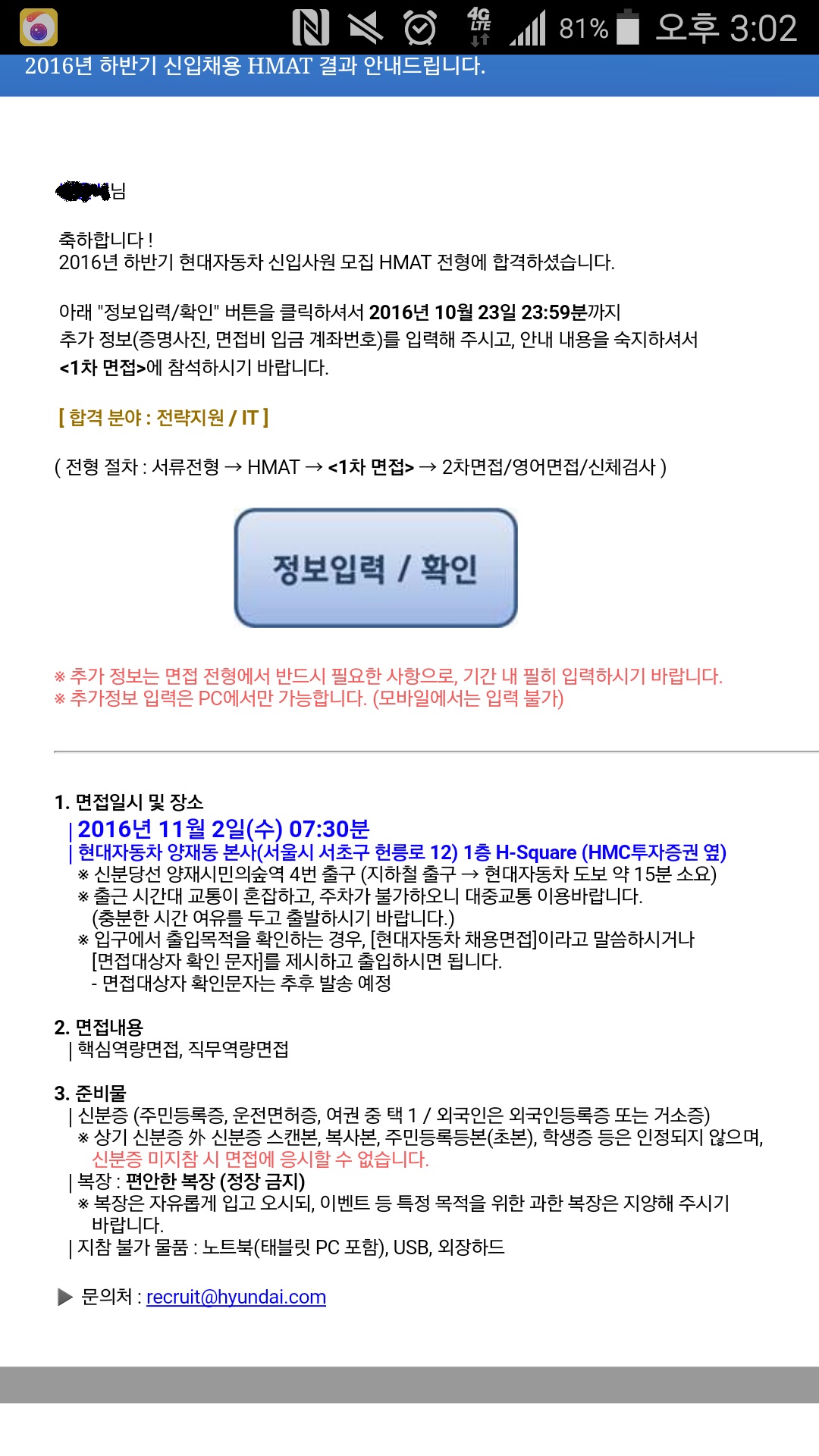 다행히 합격을 했고, 면접 통지서를 받았다.